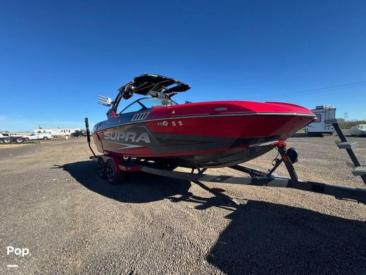 The 2016 Supra SA is a bold, modern wake boat designed to deliver high-end performance with a refined, aggressive style. Built on Supra's compact yet capable 22-foot hull, the SA blends luxury, power, and surf-focused innovation into a boat that feels both sporty and premium. Its sharp lines, low profile, and distinctive styling give it a confident presence on the water, while thoughtful design details reflect Supra's focus on performance-driven comfort.