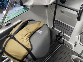 The deck of this 2021 219TFX from step-in to bow mounted trolling motor is covered with Aqua Track flooring and there is no storage space not accessible and without utility. Your movement around the fishing surface is relatively unimpeded but for the two fixed seats at the cockpit and the starboard and port windshield protected consoles.
