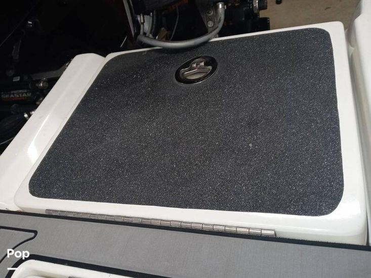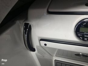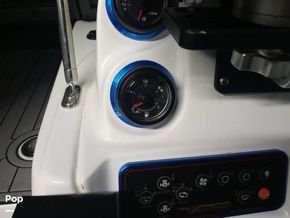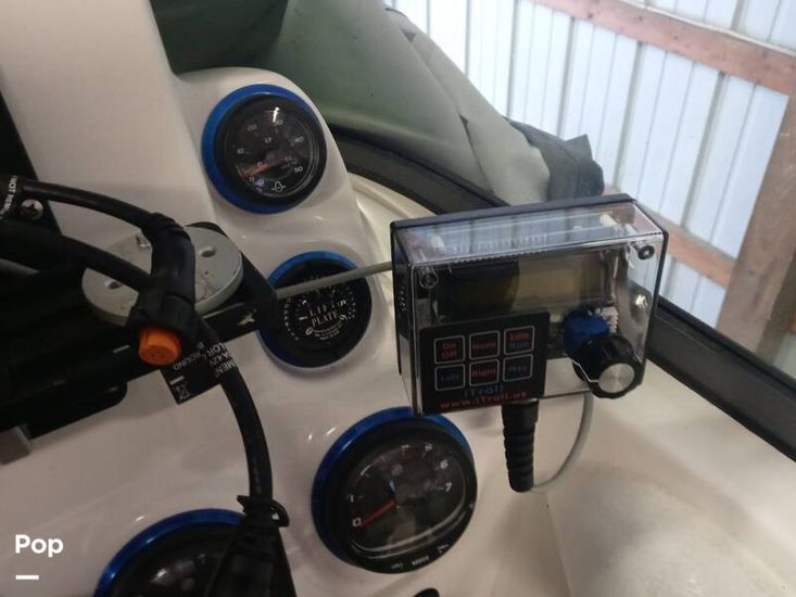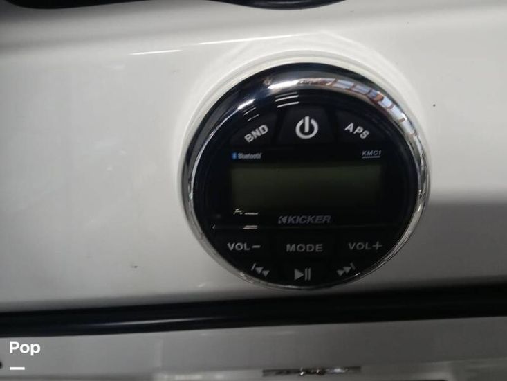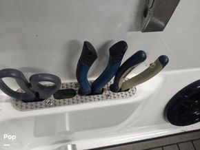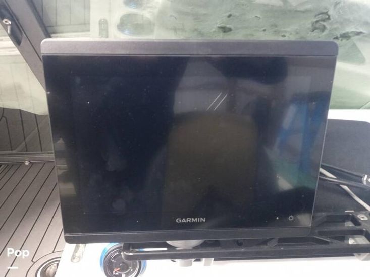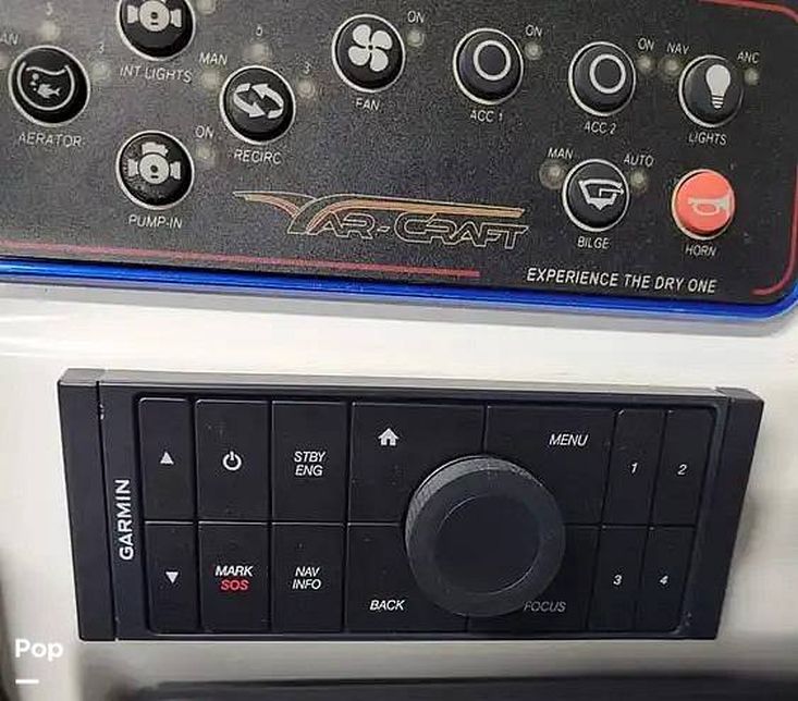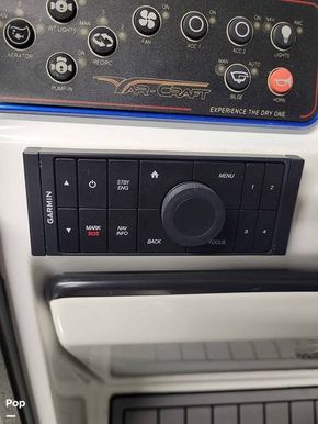 The Passenger console includes dash storage and access to the Kicker sound system. The captain console includes easy to read digital matching gauges, a 10 in-Garmin GPS with autopilot, and master power controls at the dash. The molded fiberglass console includes kick panels for the captains' feet and a fiberglass enclosure for the original owner to add a custom toggle switch trim pad control.