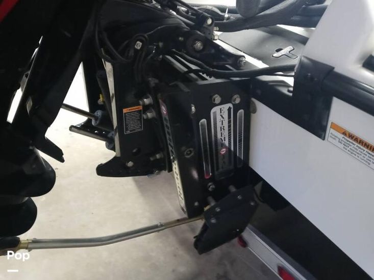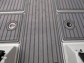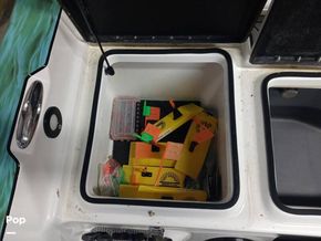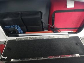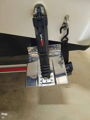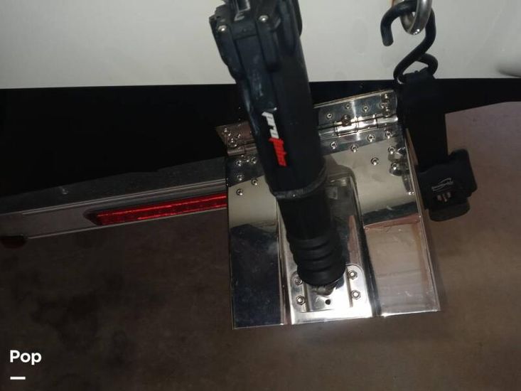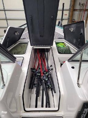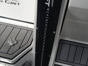 The aft casting platform features a large port side rod locker for up to 13-foot rods. A boarding ladder has built in inserts for either Port or Starboard side, and two mounts for a third fighting seat. At the transom are a 42 in by 16 in pump-in pump-out livewells with auto and manual aeration and recirculation. Hydraulic jack plate with 8 in clearance.