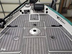 The Yarcraft's all fiberglass construction deep-V "The Dry One" hull design, excels in bigger rougher waters that serious fishermen demand. But the custom vinyl wrap of sport fish will set you apart on the lake. Absolutely gorgeous.